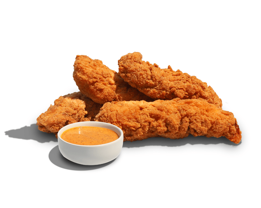 Four hand-battered tenders with two dips. 1,020-1,820 cal.