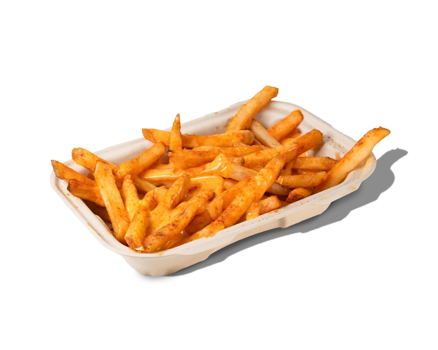 French fries tossed in Nashville Hot rub, and topped with cheese sauce. 1,350 cal.